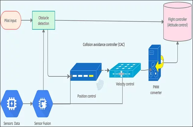 Unmanned aerial vehicle (UAV) is employed in disparate fields these are getting exceptionally famous ongoing occasions along with these form of lines but another application situations to arise. It should be sufficiently quick to create a response without colliding an obstacle.The most important requirement for autonomous flightsis collision avoidance,especially during the numerous solutions for discovery barriers. Collision avoidance exists these arrangements and experience the defective effects of various disadvantages. Obstacle Detection and Collision Avoidance for a UAV is working in a cruel and restricted conditionto buildthe discernment necessities along with control intricacy. It should able to know about its upcoming barrier and keep away from certain impacts, regardless of whether this implies disregarding their essential common objective for self-security perspective.